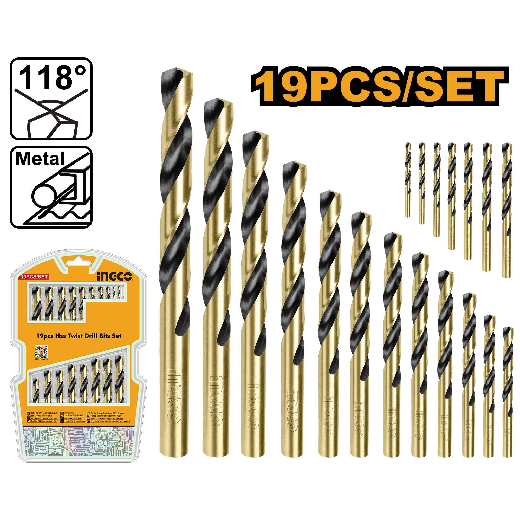 19pcs HSS twist drill bits set
