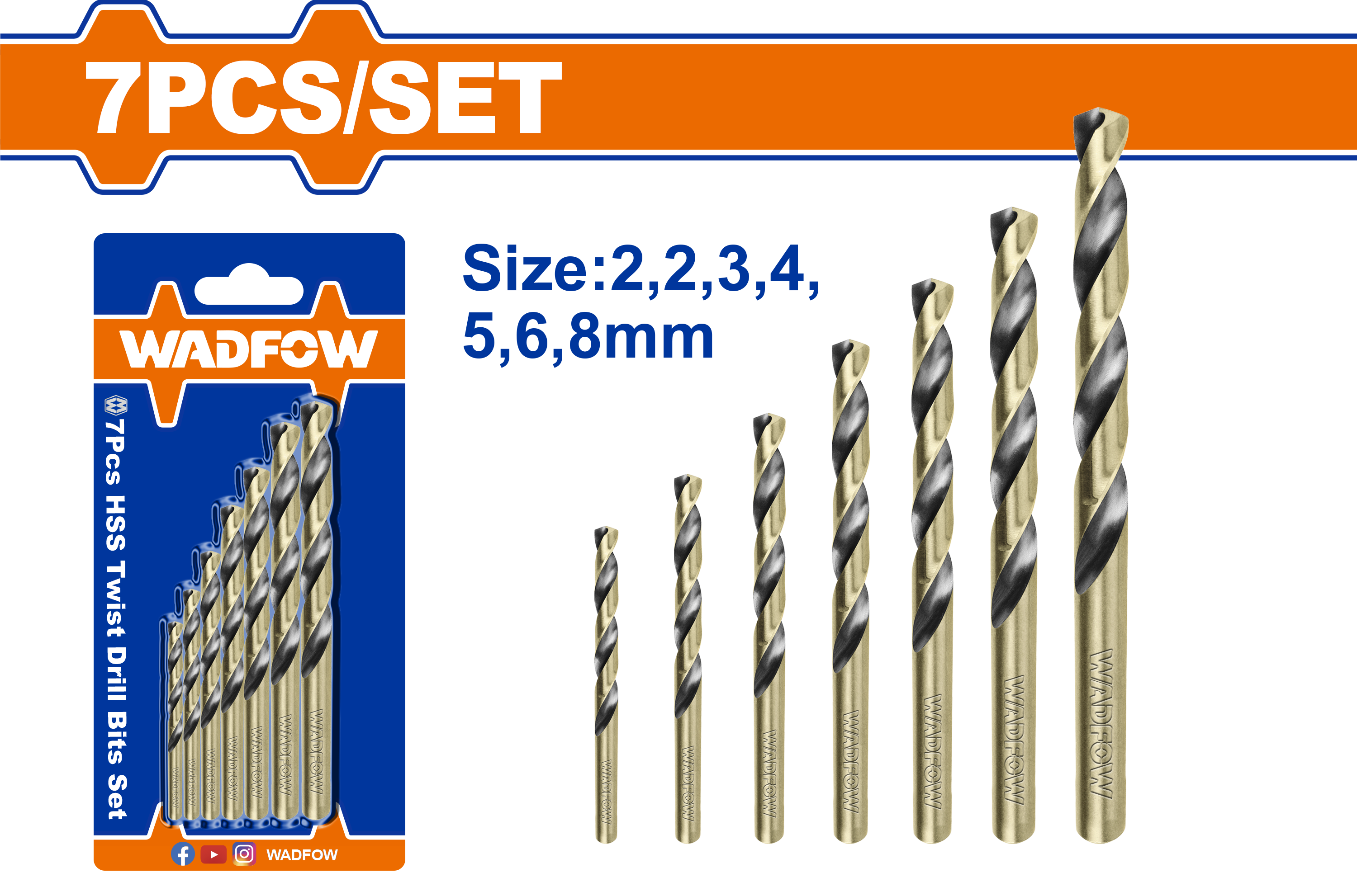 7pcs/set Size:2X49,2X49,3X61,4X75,5X86,6X93,8X117 Packed by blister card