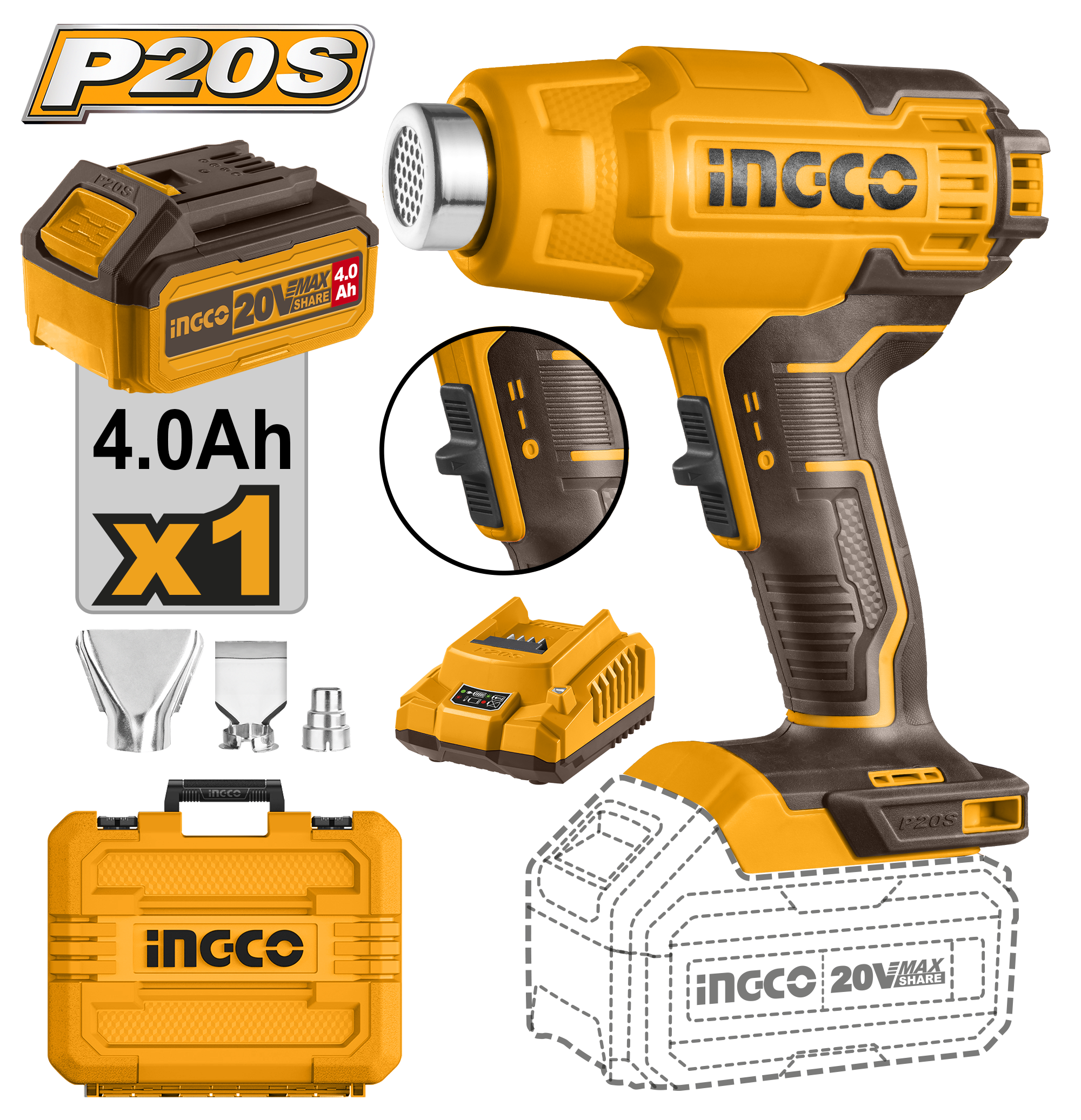Cordless heat gun 20V + Battery – P1C5 – old