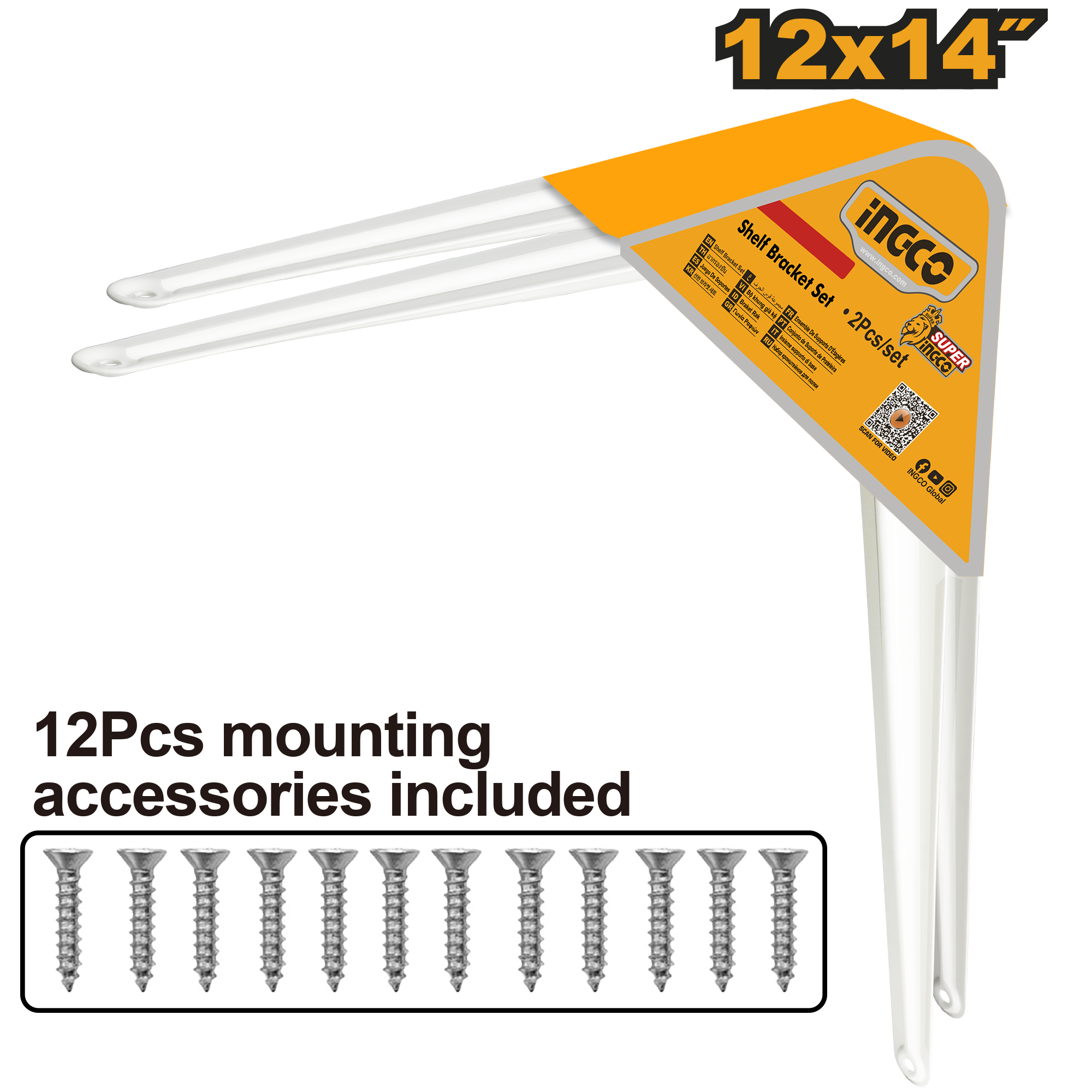 Includes :2 pcs Shelf Brackets 12 screws attachment