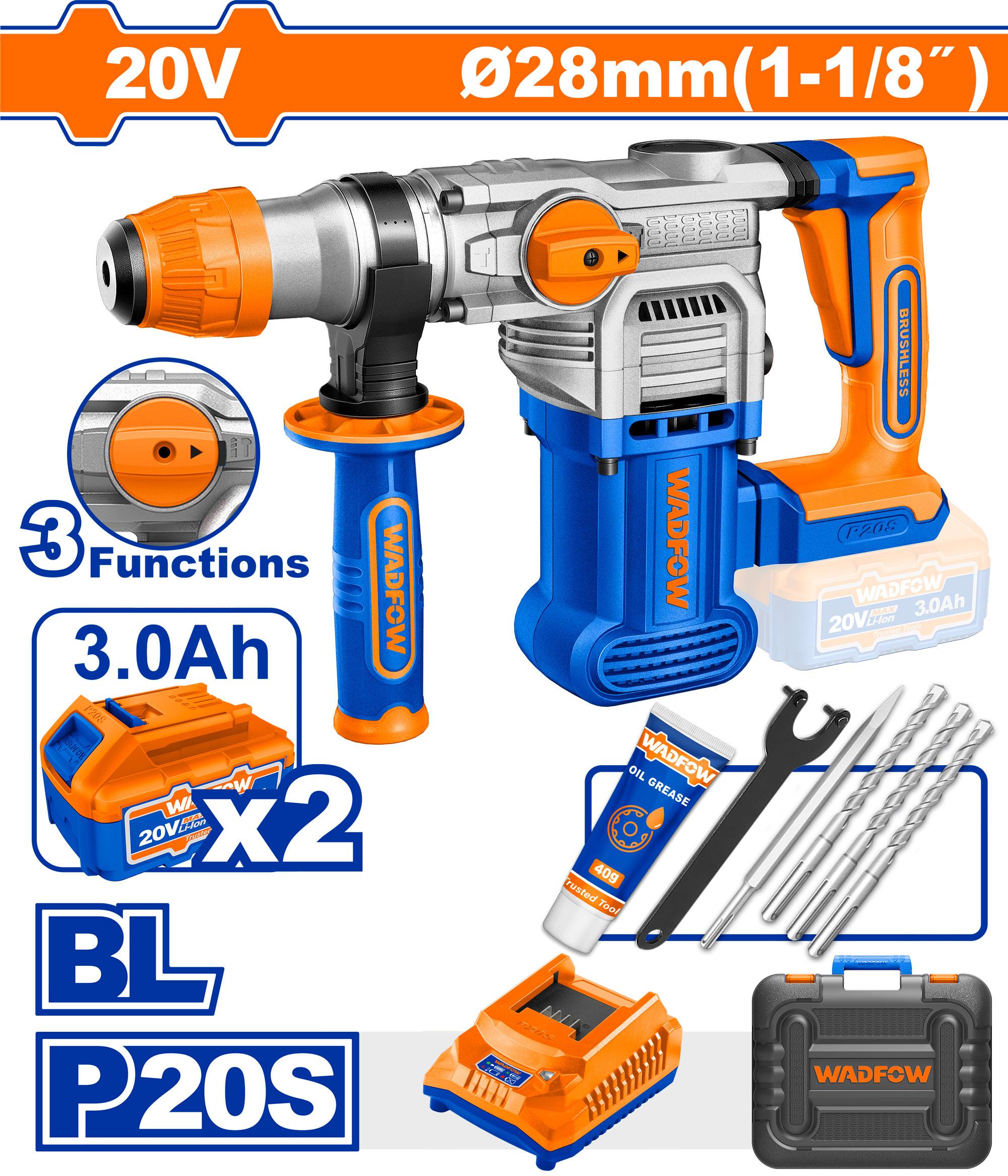 Cordless rotary hammer 28mm 20v + 2 3Ah Battery + charger